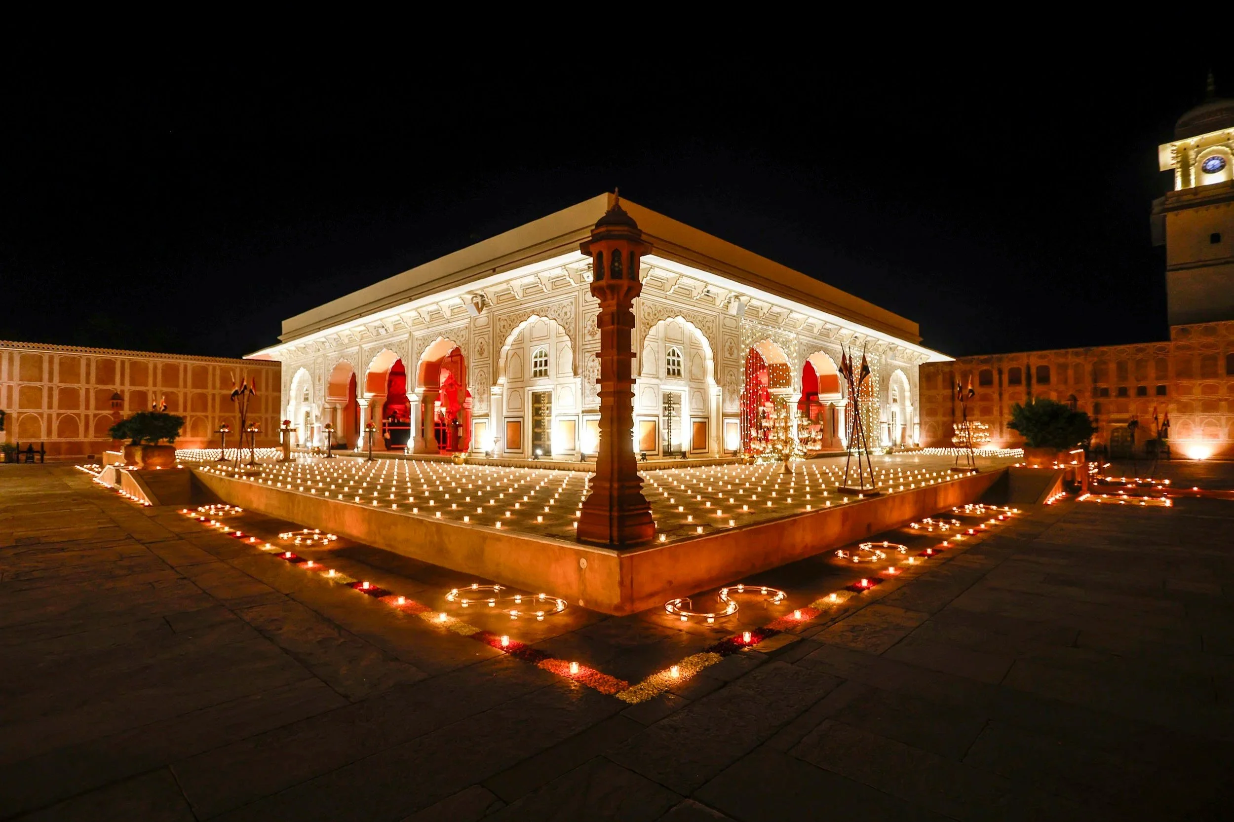 Banyan regularly curates extraordinary celebrations in some of India’s most magical settings, but a favourite will always be City Palace, Jaipur. Taken exclusively for a private evening under the stars, the palace becomes the stage for a truly unforgettable event. Guests will be welcomed with a royal procession before enjoying an evening of entertainment featuring master musicians and performers from across Rajasthan. Cascading rose petals, extravagant floral installations and a beautifully set banquet table, all with the illuminated palace as the breathtaking backdrop — an experience that could only happen in India.